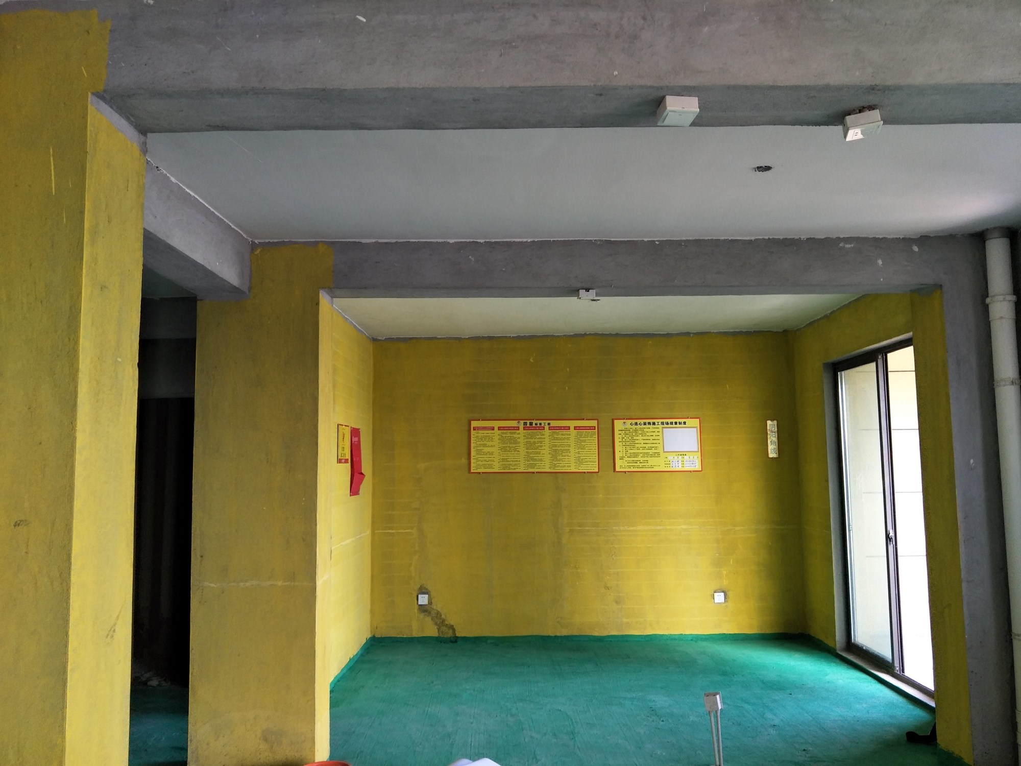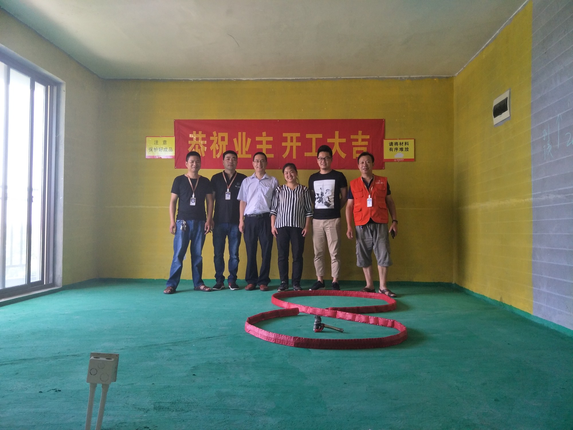 在開(kāi)工前一天現(xiàn)場(chǎng)的黃墻綠地就已全部刷好