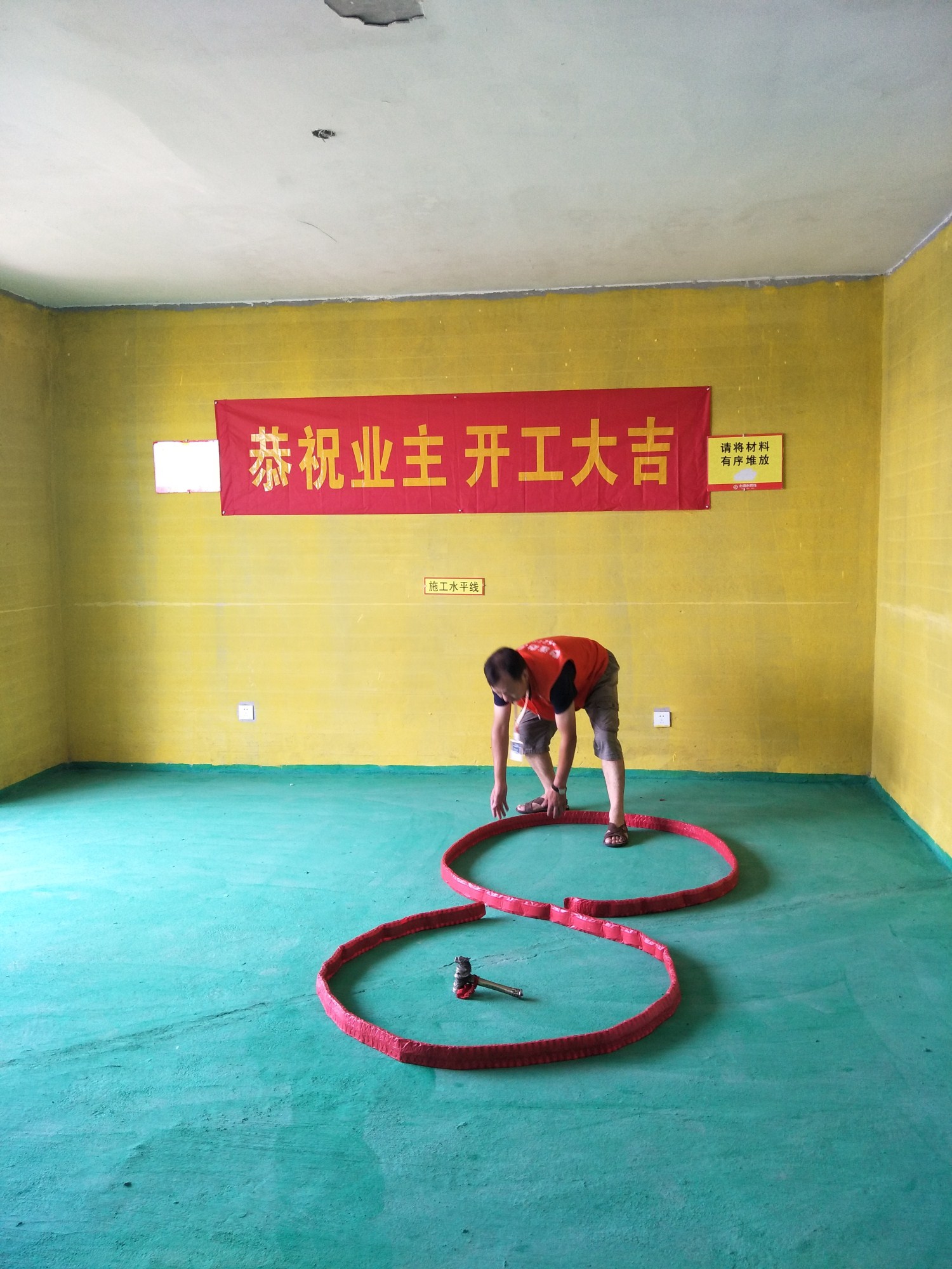 工程部-邱質(zhì)檢 提前擺放好開(kāi)工鞭炮