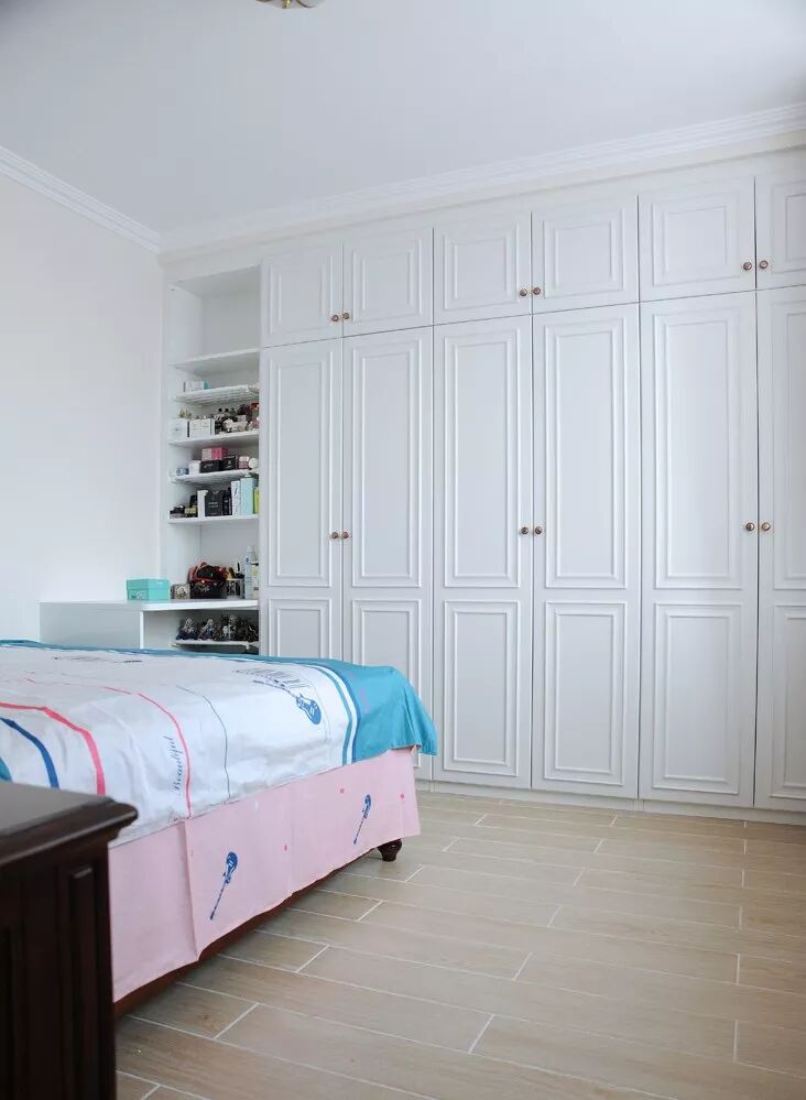 18、臥室衣柜一定要做到頂,不然總是要去打掃灰塵太麻煩,現(xiàn)場木作衣柜相對定制衣柜,與墻體的緊密性要好很多,尤其是衣柜頂?shù)奶幚頃c其他三面墻體保持一致。